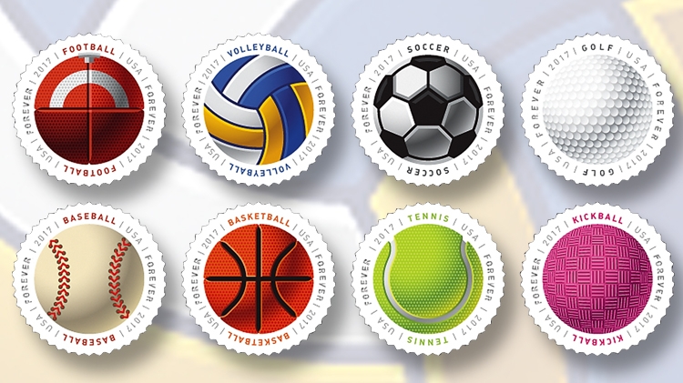 The USPS issued the Have A Ball! stamps on June 14th 2017. The pane of 16 featuring eight different designs presents a special coating applied only to selected areas.  This gives the stamps a textured feel. Mike Ryan was the designer while Greg Breeding served as the art director for these beautiful textured stamps.