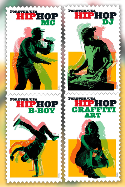Hip hop’s influence has spread far and wide in American culture – from movies and fashion to a set of stamps issued by the USPS in 2020.