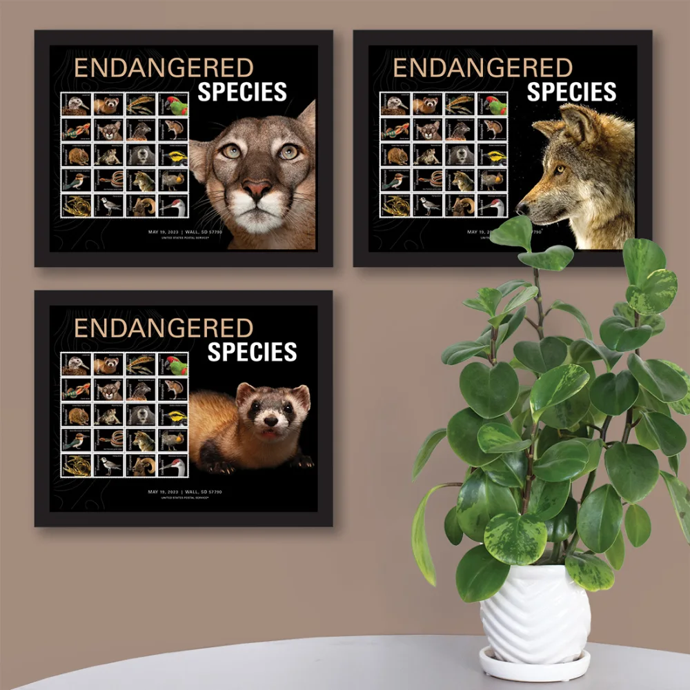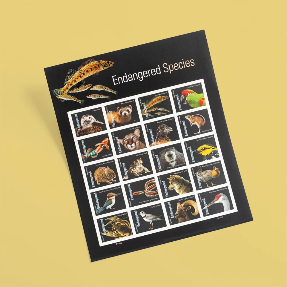 America’s natural bounty includes an astounding variety of unique and priceless wildlife. Under the Endangered Species Act, which marks its 50th anniversary in 2023, more than 1,300 imperiled plant and animal species are safeguarded to increase their chances of survival. With this pane of 20 stamps, the U.S. Postal Service® presents a photographic portfolio of 20 representative endangered animal species. Those featured are found within the 50 states and American territories and possessions, or living near U.S. borders.
